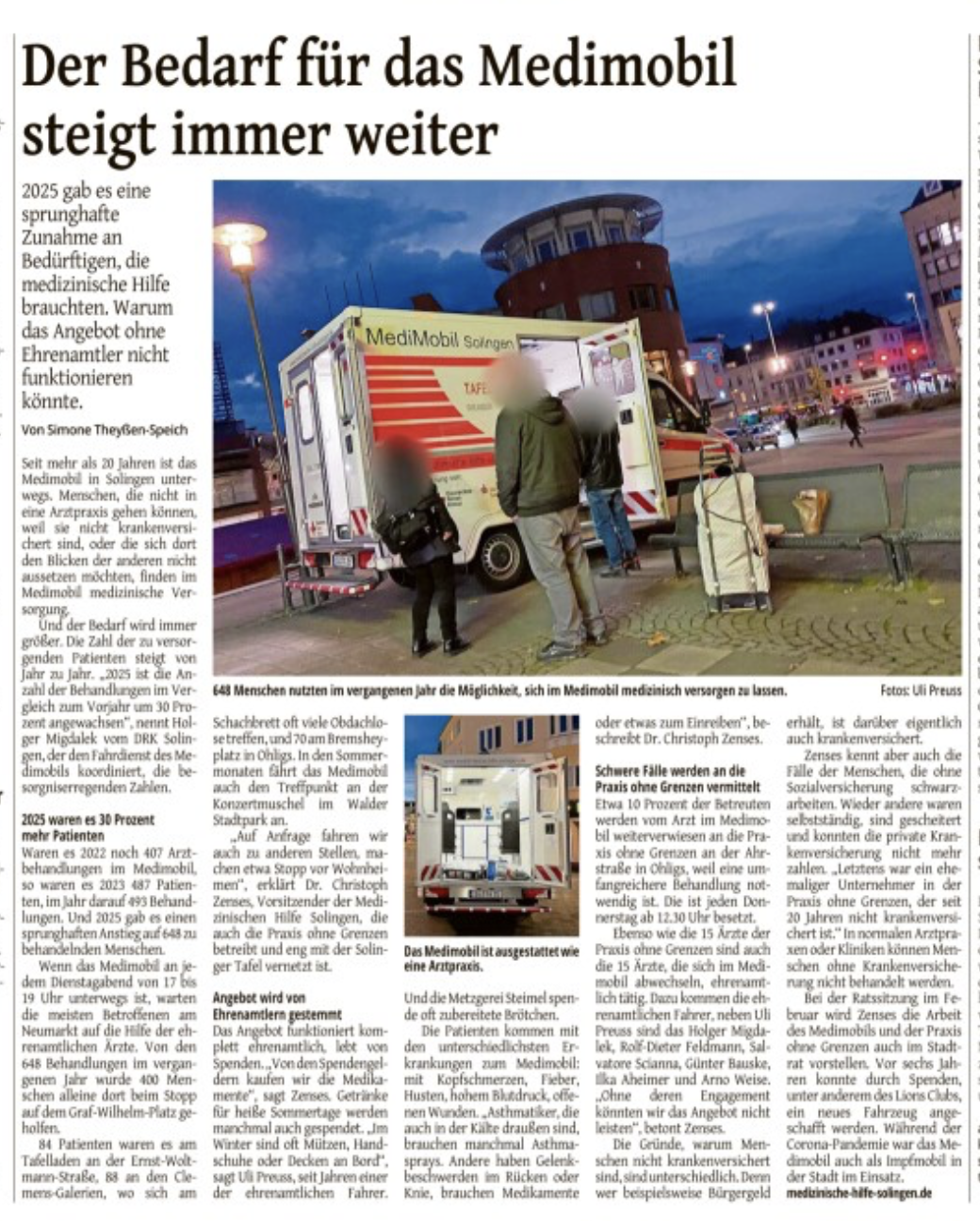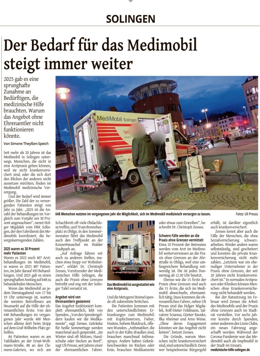 Es werden, frei von bürokratischen Sachzwängen der heutigen Medizin, Menschen an der Basis ohne Auflagen versorgt, weil sie auch Teil unserer Gesellschaft, Teil von Solingen sind.